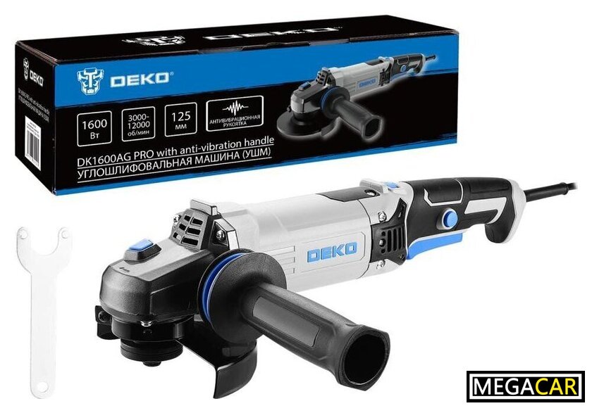 | Комплект поставки | шлифовальная машина, защитный кожух, рукоятка, фланцевый ключ, угольные щетки (2 шт.), руководство по эксплуатации, коробка |