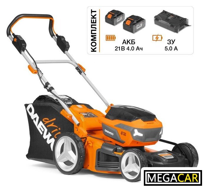 | Комплектация | - Газонокосилка - 1 шт., - Аккумулятор 4,0 Ач - 2 шт., - Зарядное устройство - 1 шт., - Нижняя часть рукоятки - 1 шт., - Верхняя рукоятка - 1 шт., - Травосборник - 1 шт., - Крепежные элементы - 1 комплект, - Руководство по эксплуатации, - Гарантийный талон, - Коробка |