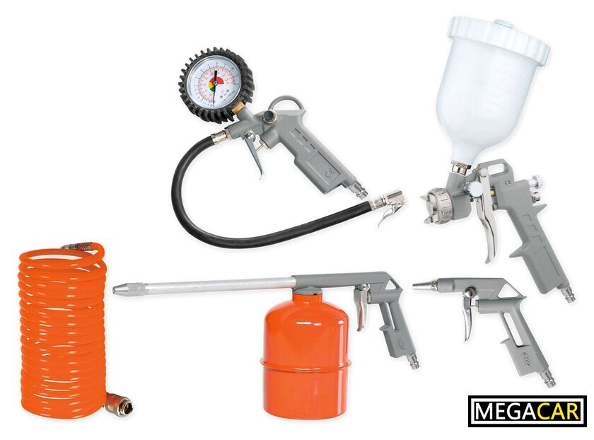 | Комплектация | Насадка для работы со сжатым воздухом – 1 шт.Насадка для распыления краски – 1 шт.Насадка для распыления жидкости – 1 шт.Насадка для подкачки шин – 1 шт.Воздушный шланг – 1 шт. |