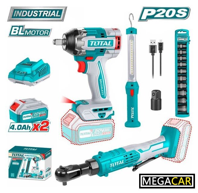 | Комплектация | - Гайковерт TIWLI2050 - 1 шт.- Трещотка TOTAL TDRLI2060151 - 1 шт.- Фонарь TOTAL TWLI35261 - 1 шт.- Аккумулятор TFBLI2002 4,0 Ач - 2 шт.- Зарядное устройство TFCLI2001 - 1 шт.- Переходник 3/8" квадрат / 1/2" квадрат - 1 шт.- Ударные торцевые головки - 10 шт.- Кабель USB для зарядки TWLI35261 - 1 шт.- Коробка |