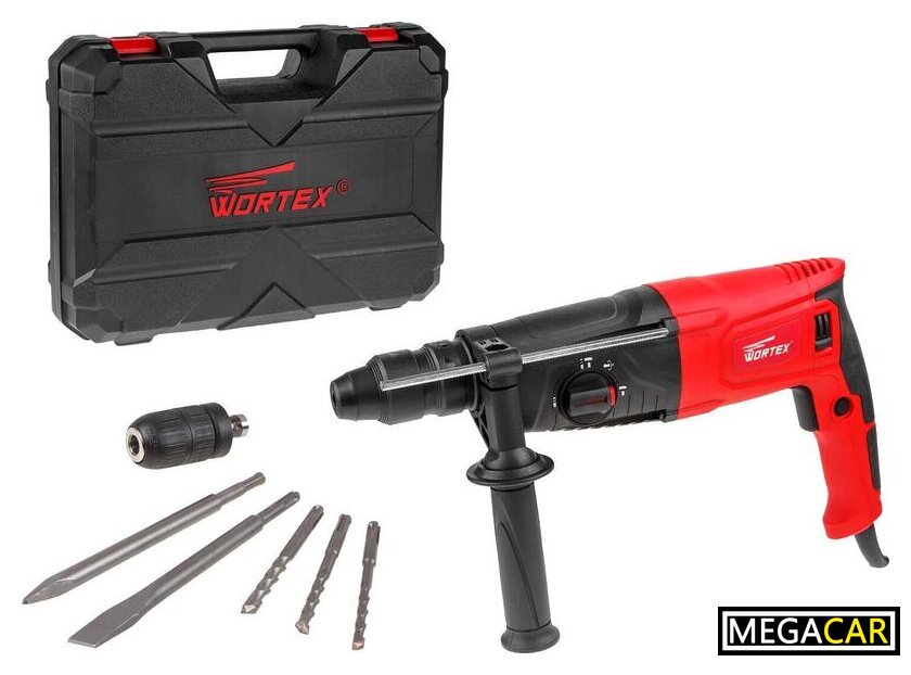 Комплект поставки | - ограничитель глубины сверления- дополнительная рукоятка- быстрозажимной патрон- 3 сверла- 2 зубила- документацияПоставляется в пластиковом кейсе |