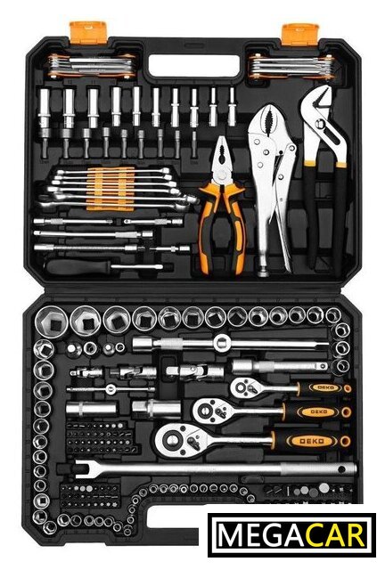 | Комплектация | Биты-головки (18 шт): PH: 1, 2 PZ: 1, 2 H: 3, 4, 5, 6 SL: 4, 5.5, 7 T: 8, 10, 15, 20, 20, 25, 30 Т-образный вороток 1/4" - 1 шт. Универсальные шарниры (3 шт): 3/8" 1/4" 1/2" Отвертка-держатель 1/4" - 1 шт. Гибкий удлинитель 1/4" - 1 шт. Держатели для бит (2 шт): 1/2" 1/4" Торцевые головки 1/4" (18 шт): Метрические: 4, 4.5, 5, 5.5, 6, 7, 8, 9, 10, 11, 12, 13, 14 мм Е-тип: Е4, Е5, Е6, Е7, Е8 Торцевые головки 1/2" (16 шт): 10, 12, 13, 14, 15, 16, 17, 18, 19, 20, 21, 22, 24, 27, 30, 32 мм Торцевые головки 3/8" (9 шт): 10, 11, 12, 13, 14, 15, 17, 18, 19 мм Удлинители (2 шт): 3/8"F*1/4"М 1/2"F*3/8"М Переставной ключ 10" - 1 шт. Зажимные клещи 10" - 1 шт. Плоскогубцы 7" - 1 шт. Комбинированные ключи (6 шт): 10, 11, 12, 13, 14, 15 мм Удлиненные головки 1/4" (10 шт): 4, 5, 6, 7, 8, 9, 10, 11, 12, 13 мм Ключи Torx (8 шт): Т: 9, 10, 15, 20, 25, 27, 30, 40 Шестигранные ключи (8 шт): 1.5, 2, 2.5, 3, 4, 5, 6, 8 мм Биты 6.35 мм (68 шт): PZ: 0, 0, 1, 1, 2, 2, 3, 3 PH: 0, 0, 1, 1, 2, 2, 3, 3 H: 2, 2.5, 3, 3, 4, 4, 5, 5, 5.5, 6, 7, 8 TT: 8, 9, 10, 10, 15, 20, 20, 25, 30, AD SL: 3, 3, 4, 4, 4, 5, 5, 5.5, 5.5, 6, 6.5, 7, 7, 8 T: 8, 8, 9, 9, 10, 10, 15, 15, 20, 20, 25, 25, 27, 30, 30, 40 Биты 8 мм (19 шт): PZ: 3, 4 PH: 3, 4 SL: 8, 10, 12 H: 8, 10, 12, 14 T: 40, 45, 50, 55 TT: 40, 45, 50, 55 Биты с торцевой головкой (9 шт): 5, 6, 7, 8, 9, 10, 11, 12, 13 мм Шарнирный вороток 375 мм - 1 шт. Удлинитель с адаптером для головок 1/2" - 1 шт. Кейс - 1 шт. |
