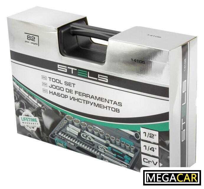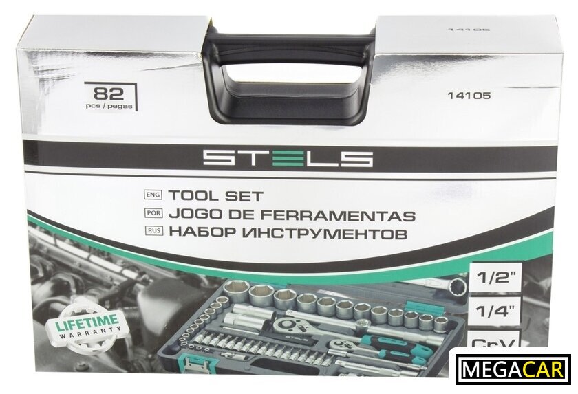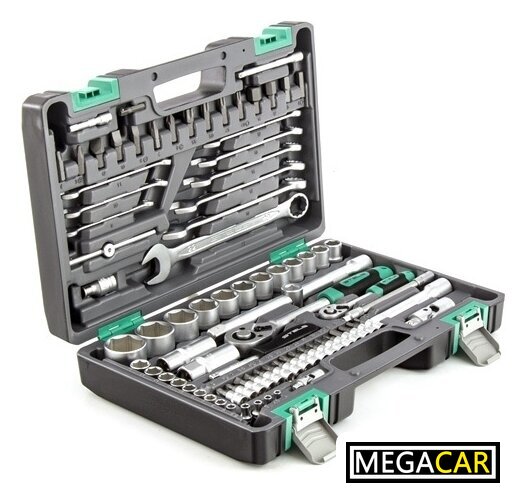 Комплектация | - Ключ трещоточный 1/2.- Ключ трещоточный 1/4.- Головки торцевые 1/2: 14, 15, 16, 17, 18, 19, 20, 22, 24, 27, 30, 32.- Головки торцевые 1/4: 4, 4.5, 5, 5.5, 6, 7, 8, 9, 10, 11, 12, 13, 14.- Удлинитель гибкий отверточная рукоятка 1/4.- Ключи комбинированные: 8, 10, 11, 12, 13, 14, 17, 19, 22.- Кардан 1/2.- Кардан 1/4.- Удлинитель 1/2: 125 мм, 250 мм.- Удлинитель 1/4: 50 мм, 100 мм.- Адаптер для бит 1/4 -длина 25 мм.- Головки свечные 1/2: 16 мм и 21 мм;- Вороток Т-образный, 1/2, 1/4.- Биты с торцевой головкой 1/4 -длина 32 мм: Н - 3, 4, 5, 6, T8, T10, T15, T20, T25, T30, SL 4, 5.5, 7, PH1, PH2, PZ1, PZ2.- Адаптер 1/2 на 3/8.- Держатель для бит 1/2 на 5/16.- Биты 5/16: T40, Т45, Т50, Т55, SL8, SL10, SL12, PH3, PH4, PZ3, PZ4, Н - 8, 10, 12, 14.- Отвертка держатель для бит. |
