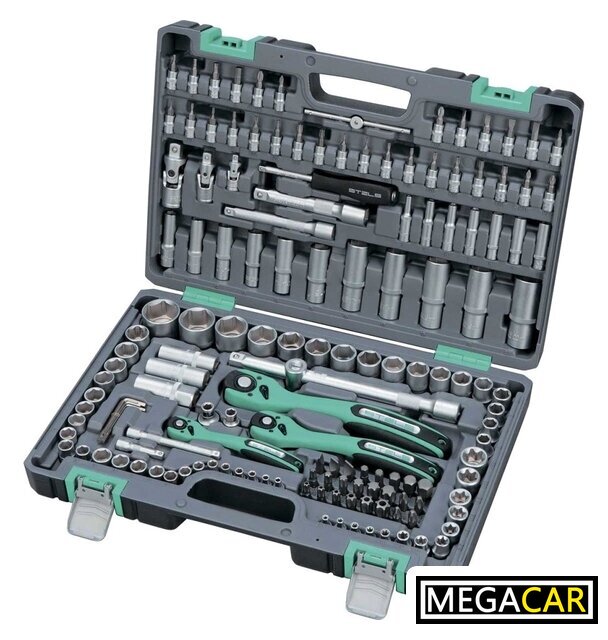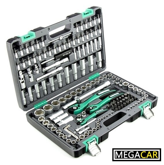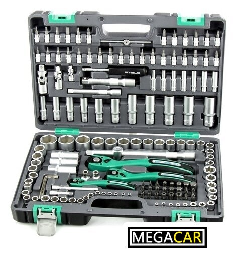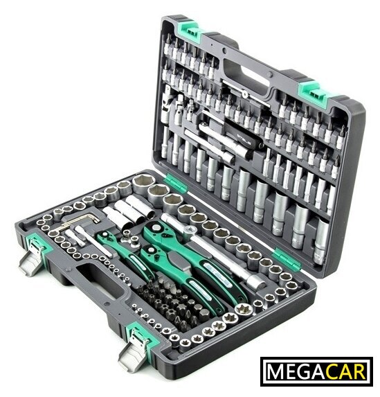 Комплектация | - Ключ трещоточный 1/4.- Ключ трещоточный 3/8.- Ключ трещоточный 1/2.- Вороток на 1/4, 1/2.- Удлинитель 1/4: 50 мм, 100 мм.- Удлинитель 125 мм 3/8.- Удлинитель 125 мм 1/2.- Отвертка-держатель 1/4.- Кардан 1/4, 3/8, 1/2.- Головки торцевые свечные (с резиновой вставкой) 14 мм, 16 мм, 21 мм- Головки торцевые удлиненные 1/4: 4, 5, 6, 7, 8, 9, 10.- Головки торцевые удлиненные 3/8: 10, 11, 12, 13, 14, 15.- Головки торцевые удлиненные 1/2: 16, 17, 18, 19, 22.- Головки торцевые 1/4: 4, 4.5, 5, 5.5, 6, 7, 8, 9, 10, 11, 12, 13, 14.- Головки торцевые 1/4: Е Е4, Е5, Е6, Е7, Е8.- Головки торцевые 3/8: 10, 11, 12, 13, 14, 15, 16, 17, 18, 19.- Головки торцевые 3/8: Е Е10, Е11, Е12, Е14, Е16, Е18, Е20, Е24.- Головки торцевые 1/2" 10, 11, 12, 13, 14, 15, 16, 17, 18, 19, 20, 21, 22, 24, 27, 30, 32.- Переходник для битr 3/8 длина 28 мм.- Переходник для бит 1/2 длина 36 мм.- Биты с торцевыми головками 1/4" SL4, SL5.5, SL6.5, SL7, PH0, PH1, PH2, PZ0, PZ1, PZ2, H3, H4, H5, H6, Т8, Т9, Т10, Т15, Т20, Т25, Т27, Т30, ТT8, ТT9, ТT10, ТT15, ТT20, ТT25, ТT27, ТT30.- Биты 1/4: SL8, SL10, SL12, PH3, PH4, PZ3, PZ4, H7, H8, H10, H12, H14, T40, Т45, Т50, Т55, Т60, Т70, TT40, ТT45, ТT50, ТT55, ТT60, ТT70.- Комплект шестигранных ключей 1,3 мм, 1,5 мм, 2 мм, 2,5 мм, 3 мм, 4 мм, 5 мм. |