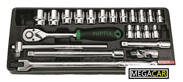 | Торцевые головки 1/2" | 18 предмет(ов) (8, 9, 10, 11, 12, 13, 14, 15, 16, 17, 19, 21, 22, 23, 24, 27, 30, 32 мм) |