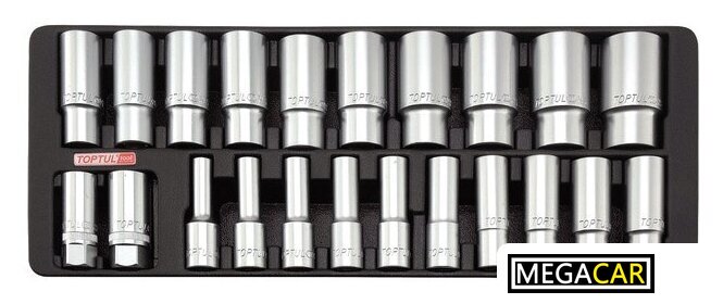 | Глубокие торцевые головки 1/2" | 22 предмет(ов) (8-32 мм) |
