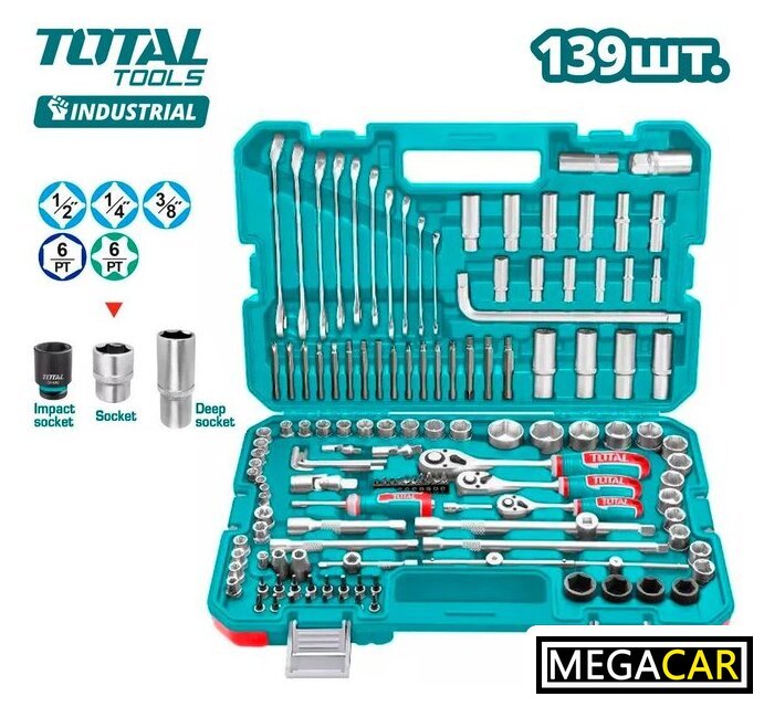 | Трещотка | 3 (1/2", 3/8", 1/4") |