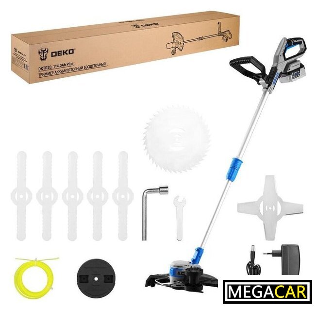 | Комплектация | - Триммер - 1 шт.- Аккумулятор 4.0 Ач - 1 шт.- Быстрое зарядное устройство - 1 шт.- Металлический нож - 1 шт.- Режущий диск - 1 шт.- Пластиковые ножи - 5 шт.- Комплект лески - 1 комплект- Ключ - 2 шт.- Крепежный комплект - 1 шт.- Руководство по эксплуатации- Коробка |