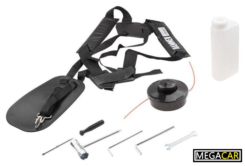 | Аксессуары | - Инструкция- Катушка с леской- Нож для травы- Ремень подвесной- Мерная канистра для смешивания топливной смеси- Ключи для монтажа и обслуживания |