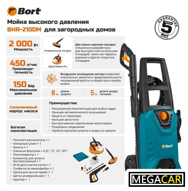 | Комплектация | - Пистолет-распылитель (1 шт)- Напорный шланг (1 шт)- Фильтр (1 шт)- Сменные форсунки (4 шт)- Пеногенератор (1 шт)- Коннектор для шланга быстросъемный (1 шт)- Игла для очистки сопла (1 шт)- Салфетка из микрофибры (1 шт)- Щетка для мытья террас (1 шт)- Щетка универсальная (1 шт)- Адаптер (1 шт) |