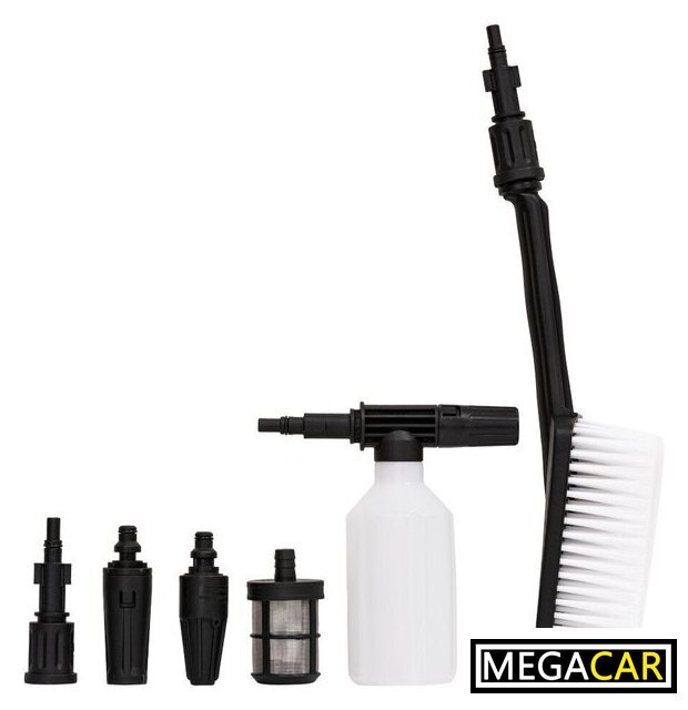 | Комплектация | • мойка• пистолет• удлинительная трубка• веерная насадка• грязевая фреза• пенная насадка• моющая щетка• быстросъемное соединение с фильтром тонкой очистки• фильтр для работы в режиме всасывания• стержень для очистки• руководство по эксплуатации• гарантийный талон |
