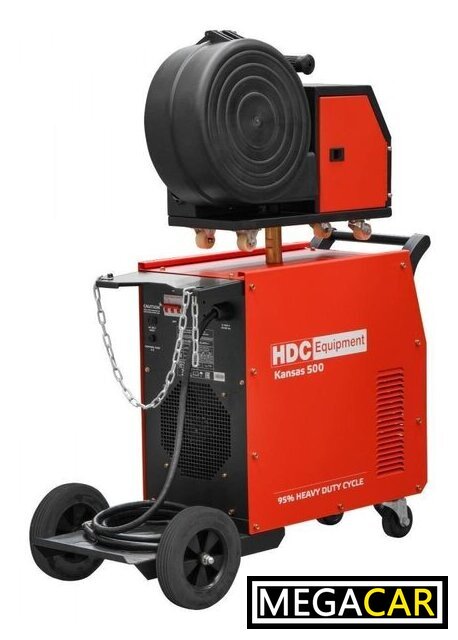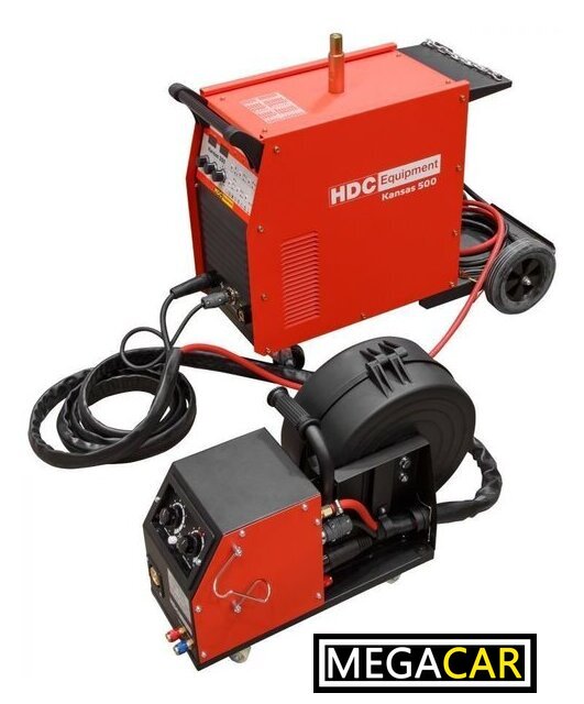 | Комплект поставки | 1. Источник питания; 2. Модуль подачи проволоки; 3. Электрододержатель с кабелем 3 метра; 4. Клеmmа заземления с кабелем 3 метра; 5. Кабельный жгут для соединения источника питания и модуля подачи проволоки 5 метров; 6. Газовый шланг 7 метров (в составе кабельного жгута); 7. Подающий ролик 1.2/1.6 mm - 2 шт (установлены в механизм подачи проволоки); 8. Подающий ролик 0.8/1.0 mm - 2 шт. |