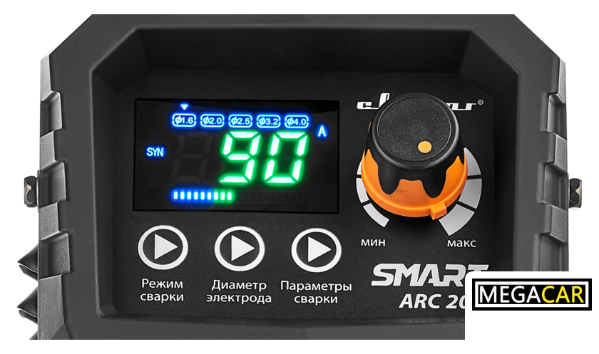 Диаметр электрода 1.6 — 4 мм  (TIG: 1.6–3.2 мм)