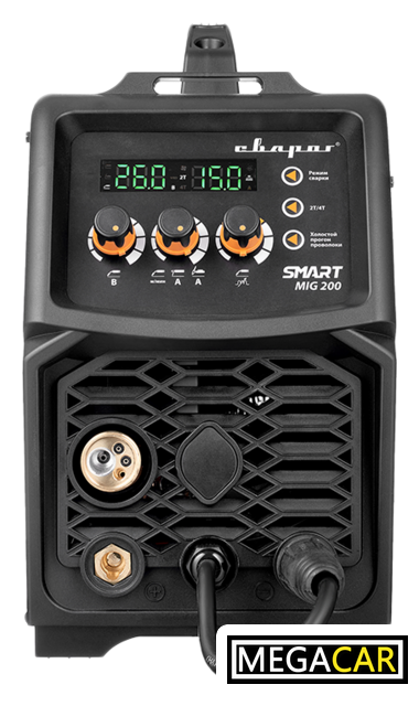 | Сварочный ток | 20 — 200 А (MIG:30–200А, MMA:20–160А, TIG:20–180А) |
