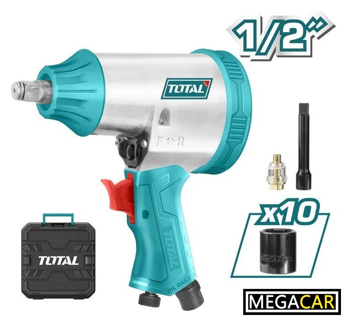 | Комплектация | - Пневмогайковерт - 1 шт.- Торцевая головка (9, 10, 11, 13, 14, 17, 19, 22, 24, 27 мм) - 10 шт.- Удлинитель 1/2'' - 1 шт.- Лубрикатор - 1 шт.- Инструкция.- Кейс. |