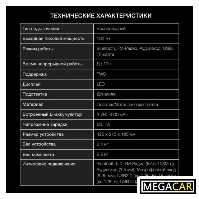 Дополнительные возможности | радио, караоке, эквалайзер, подставка для смартфона |